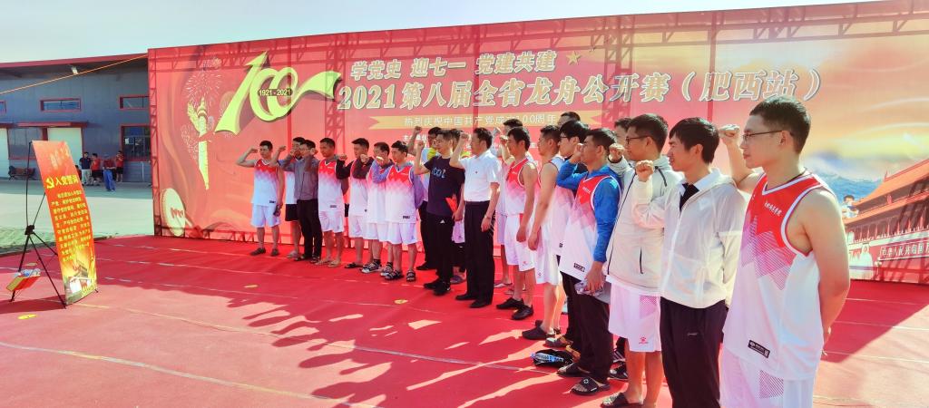 本网讯 为深入贯彻落实习近平总书记在党史学习教育动员大会上的重要讲话精神,推动党史学习教育持续开展,做到学史明理、学史增信、学史崇德、学史力行,教育引导学院全体党员同志学党史、悟思想、办实事、开新局。太阳成集团tyc522cc党总支组织全体党员参加 “学党史、迎七一、党建共建”2021年第八届全省龙舟公开赛(肥西站)。本次赛事由安徽省体育总会主办,安徽省水上运动管理中心、安徽省龙舟运动协会承办,紫蓬山旅游开发区管理委员会协办,在紫蓬山安徽省水上运动管理中心举行。