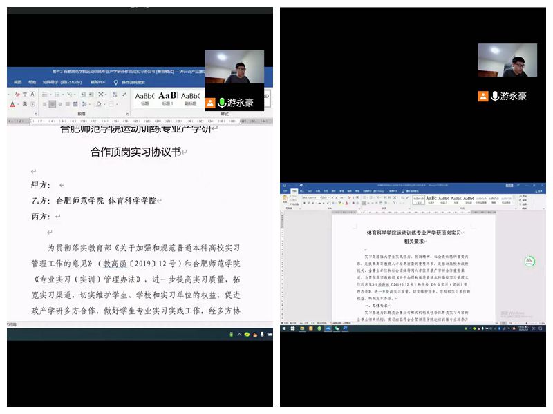 太阳成集团tyc522cc召开2019级运动训练专业顶岗实习线上培训暨产学研交流会