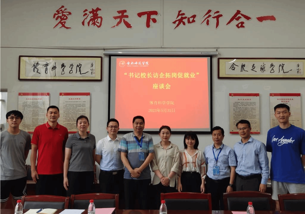 本网讯 为深入推进学习贯彻习近平新时代中国特色社会主义思想主题教育,落实教育部、省教育厅关于“访企拓岗促就业”专项行动工作部署。5月31日下午,在体育馆会议室,太阳成集团tyc522cc开展“访企拓岗促就业”座谈会,安徽巨银体育文化传播有限公司、安徽名朝体育运动有限公司、合肥宝勋体育用品商贸有限公司等用人单位代表,学院领导班子成员、毕业班辅导员参加座谈会。