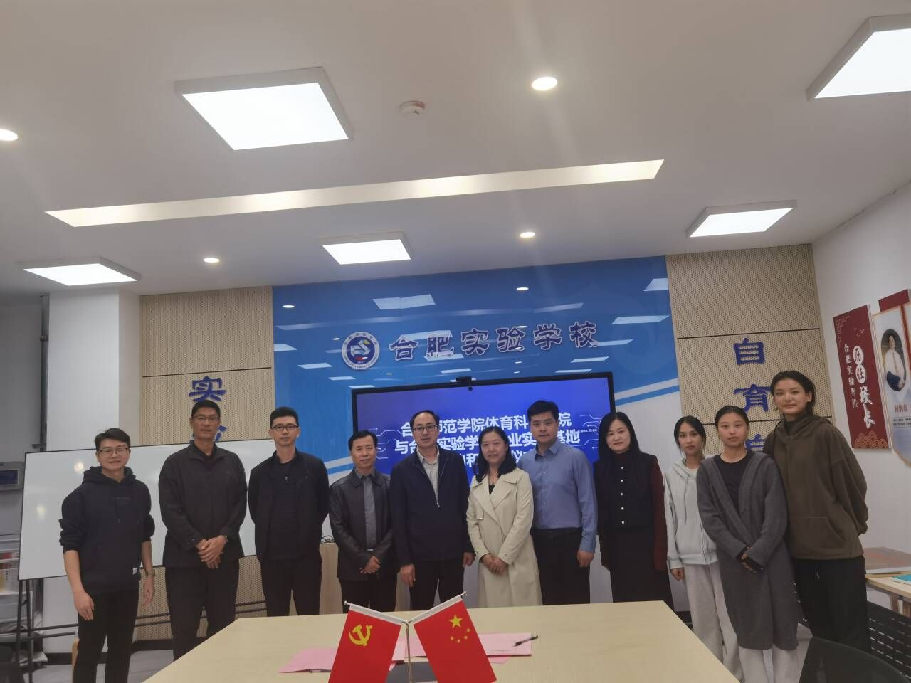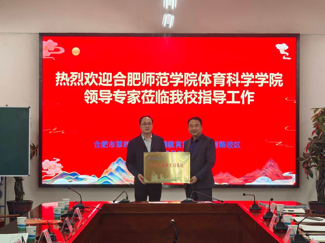 为加强教育实践基地建设,深入推进产学研合作育人,10月24日下午,太阳成集团tyc522cc党委书记赵波、副书记王飞,体育教育系主任曹垚、副主任陆保云,毕业班辅导员陈山山一行赴合肥合肥实验学校西宁路校区、合肥市第四十八中学滨湖教育集团等合作学校,推进学生就业实习和师范生实践教育基地建设并看望实习生。