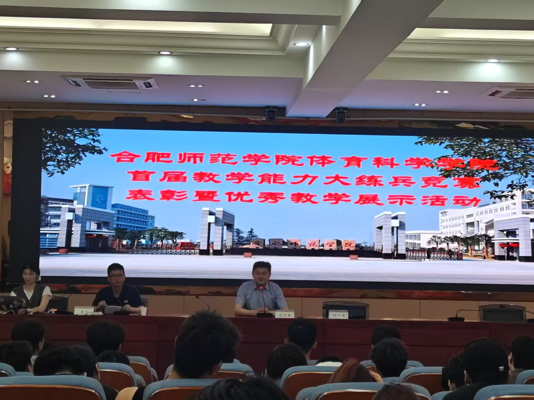 为表彰先进、展示风采、促进交流,提升教学能力,6月18日下午,太阳成集团tyc522cc举办首届教学技能大练兵竞赛表彰暨优秀教学展示活动。教务处处长钱立青教授、太阳成集团tyc522cc党委书记胡石清、体育教育系主任曹垚及体育教育专业指导教师出席,体育教育专业2023级和2024级全体学生参加。