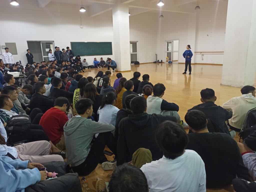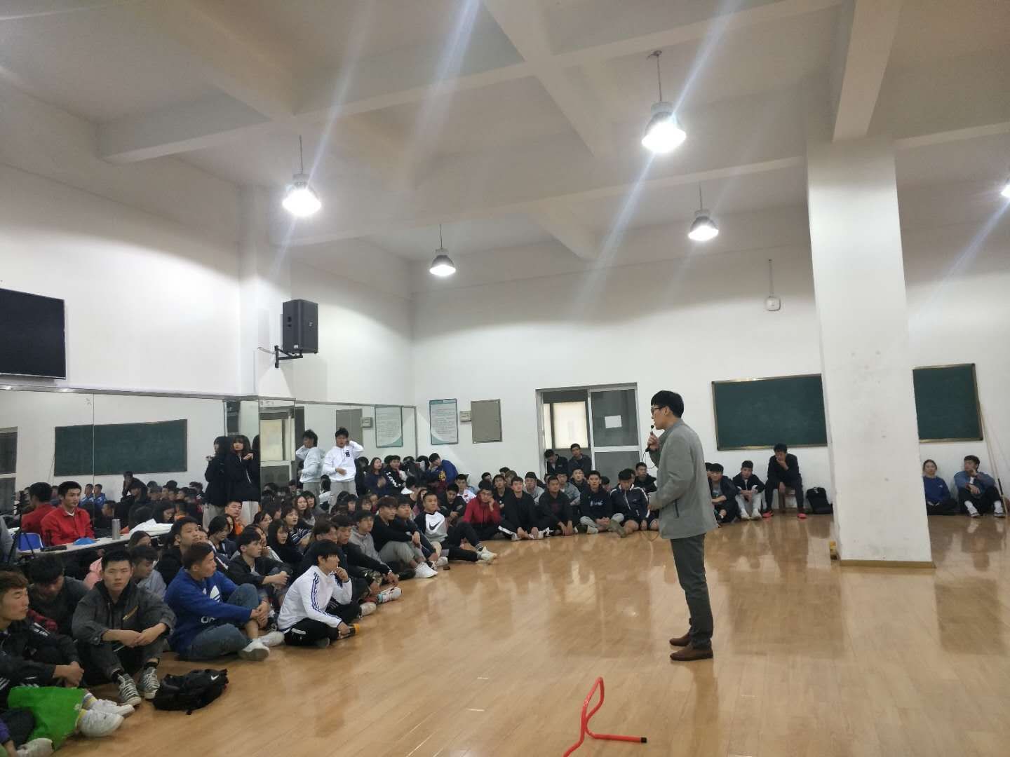 本网讯 为进一步加强运动训练专业学生教学技能培养,提高学生的教育教学能力,搭建教学相长的交流平台。11月2日,在锦绣校区体育馆二楼舞蹈房,太阳成集团tyc522cc运动训练系组织开展“无生上课”实践活动,邀请曹垚和王金晶两位老师,石可、杨涛和舒敏三位学生主讲,运动训练系汪辉老师、廖顺建和陆保云老师及全体学生参加,其中,17级和18级学生现场观摩,19级和20级通过线上直播观摩。运动训练系主任游永豪副教授主持。