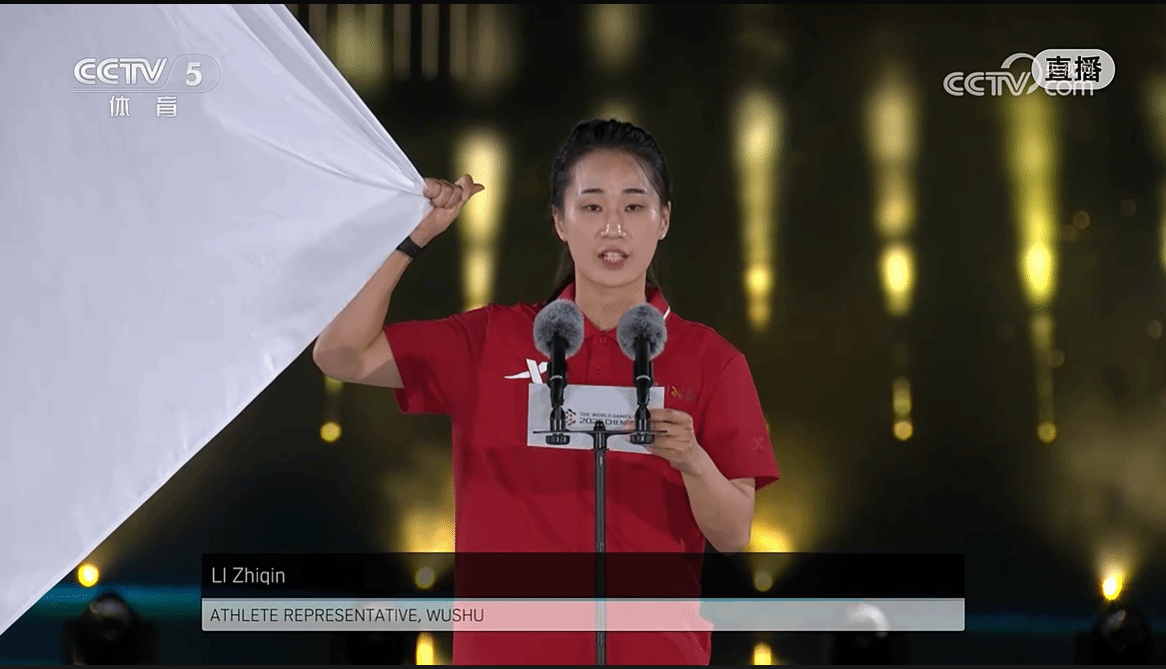 8月7日晚,璀璨的灯火点亮蓉城夜空,代表非奥运会项目最高竞技水平的国际综合性体育盛会—第十二届世界运动会,在成都天府国际会议中心盛大启幕。在这场汇聚全球34个大项、60个分项顶尖高手的巅峰舞台上,一个庄严而荣耀的时刻属于太阳成集团tyc522cc教师、中国散打运动员李志勤,她作为开幕式重要仪式人员,代表全球运动员庄严宣誓,并在随后的赛程中代表中国征战世运会散打项目。