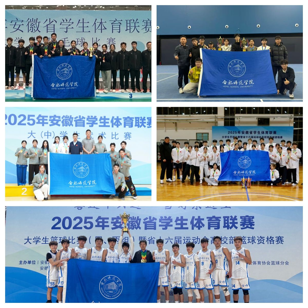 省级赛事跨越,续写辉煌篇章。在安徽省大学生体育联赛中,我校成绩取得跨越式提升,续写辉煌历史。尤为瞩目的是,校男子篮球队(丙组) 在2025年省赛中成功卫冕,实现了在该项目上的“八连冠”伟业,创造了安徽省高校体育的一段传奇,充分彰显了球队持久的“统治力”与深厚的冠军底蕴。