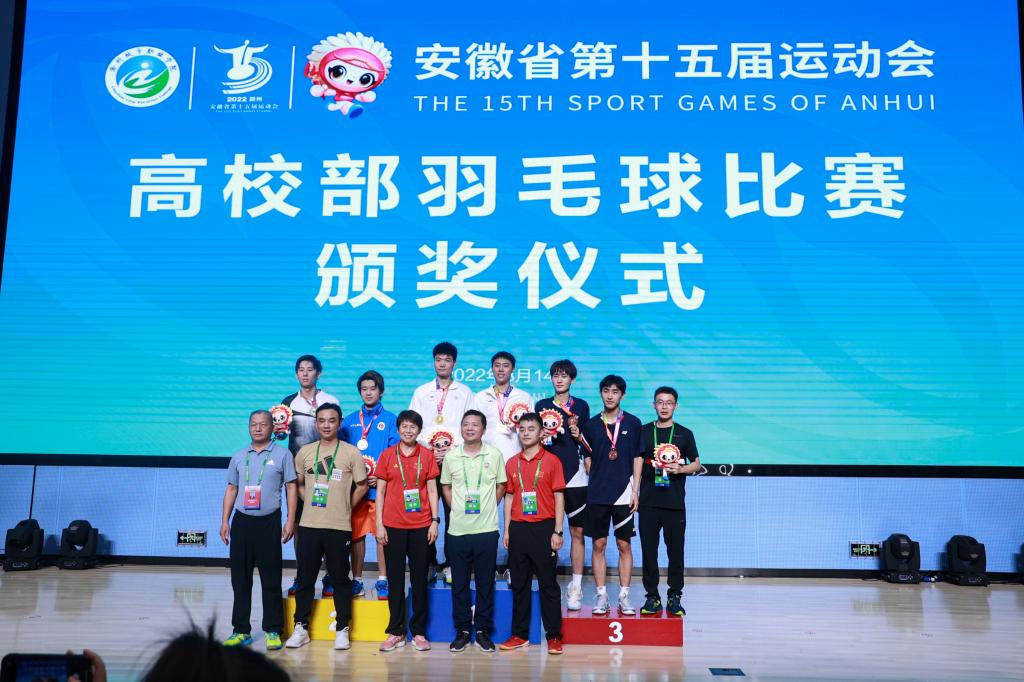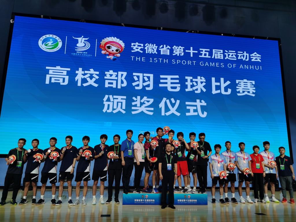 本网讯 8月5日-14日,由安徽省人民政府主办,省教育厅、省体育局、滁州市政府承办的安徽省第十五届运动会高校部羽毛球比赛在滁州城市职业学院举行。共有来自全省61所高校540名运动员参加3个组别(甲组、乙组、丙组)的男团、女团、男单、女单、男双、女双、混双共21个项目比赛。我院羽毛球队获得丙组男团亚军、男双季军,斩获1银1铜,荣获体育道德风尚奖。