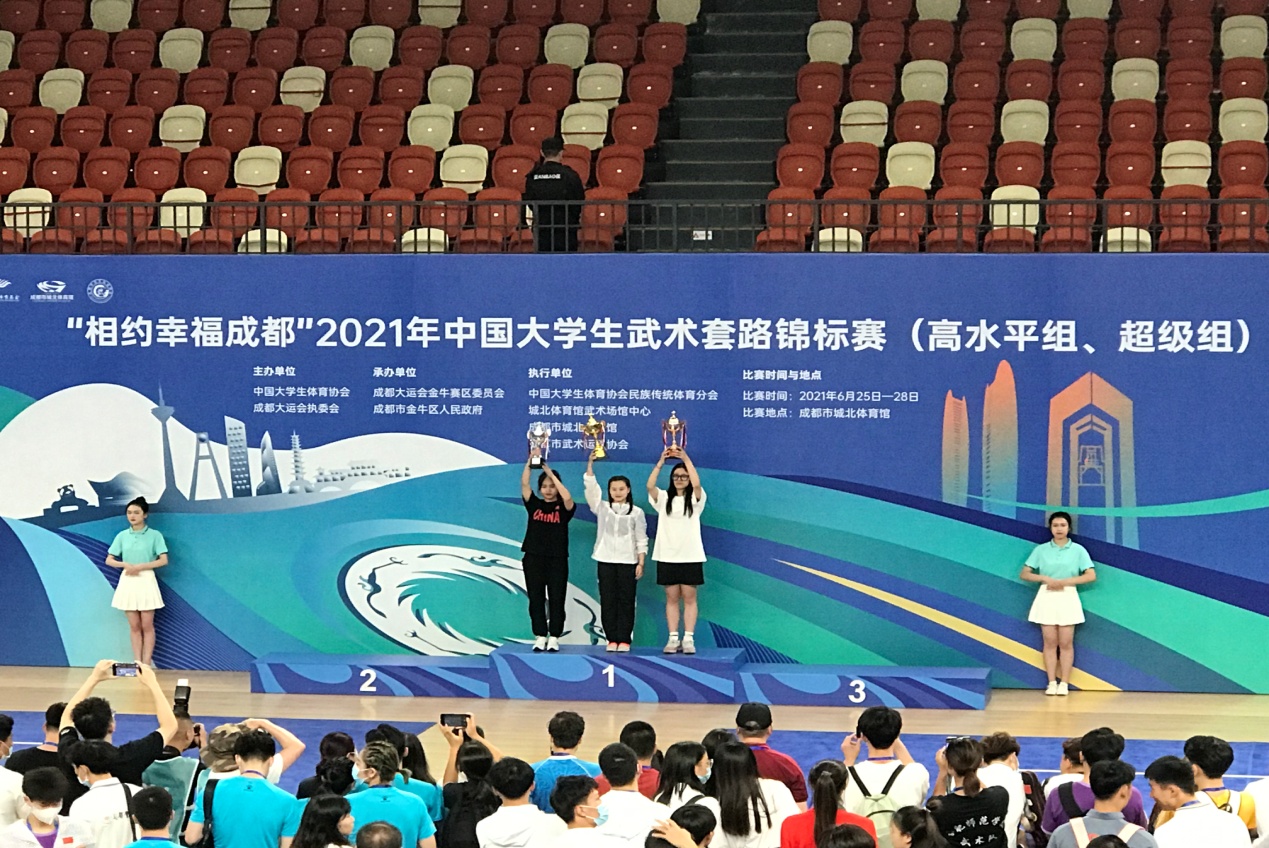 本网讯 6月25日至6月28日,由中国大学体育协会主办,第31届世界大学生夏季运动会执行委员会、金牛区人民政府、成都大运会金牛赛区委员会承办的2021年“相约幸福成都”中国大学生武术锦标赛(高水平组、阳光组)在成都举行。本次比赛共吸引来自复旦大学、浙江大学、北京体育大学、上海体育学院、华东交通大学等63所高校代表队近600名高校运动员参加。