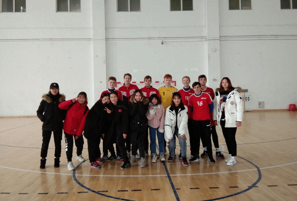 本网讯 1月3日,俄罗斯“契诃夫熊”男子手球队与tyc522cc太阳成集团男子手球队在tyc522cc太阳成集团体育馆举办了一场别开生面的手球友谊赛。