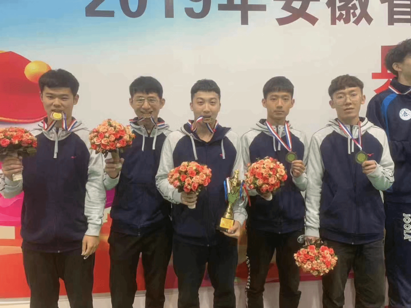 tyc522cc太阳成集团乒乓球队成立于2012年。建队以年来一直称雄于安徽省高校乒坛。目前有男、女十一名队员。球队在2017年安徽大学生乒乓球锦标赛中取得专业组男子团体冠军。在2018年度安徽省第14届省运会高校组乒乓球比赛中获得了丙组男团、男双、混双的三项桂冠。在2019年度安徽省大学生体育联赛乒乓球联赛中取得男女团体季军,冠军数和奖牌数都位居省内高校前列。