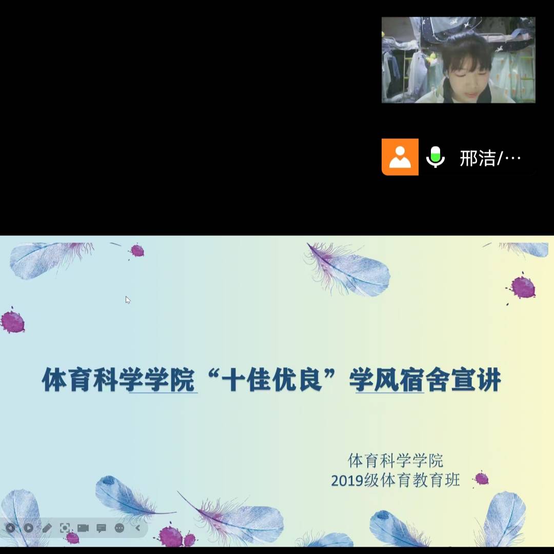 邢洁是2019级体育教育专业学生、十佳优良学风宿舍5#603宿舍长,她分别从宿舍成员介绍、课内课外活动、展望寄语等几个方面详细介绍宿舍学风创建方法与成效。宣讲中她鼓励同学们宿舍是一个集体,要以宿舍为家,互帮互助、共同发展、共同成长。