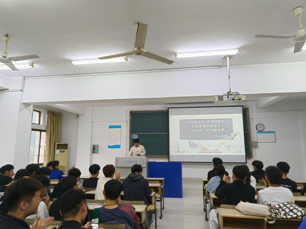 本网讯 为进一步促进体育类专业学生高质量就业质量,帮助体育专业学子更好地了解未来考研趋势,明确考研目标,帮助有考研意向的同学们在备考中理清思路,做好规划,4月13日,在博约楼211教室,太阳成集团tyc522cc组织开展了考研经验分享交流会。本次交流会邀请了2023年成功上岸的徐自辉同学作为优秀毕业生代表,为学弟学妹们分享考研经验。交流会由辅导员陈山山主持。