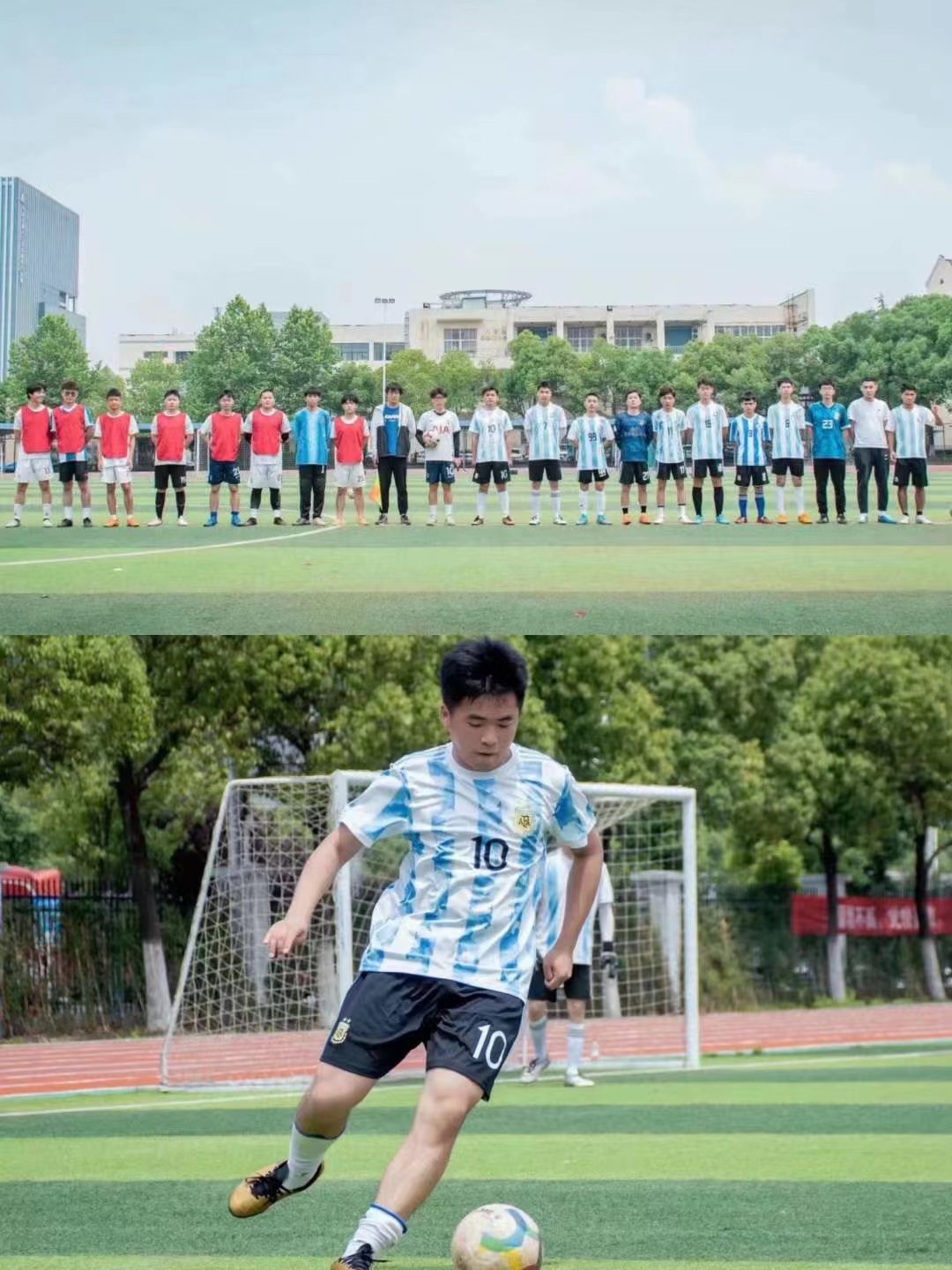 绿茵传递梦想,拼搏舞动青春。足球比赛虽然结束了,但是足球运动员们执着追梦的身影被永远铭记在了绿茵场。此次足球赛,不仅丰富了同学们的课余活动,强健了体魄,还让大家深刻体会到了默契是彼此间最好的信任,增强了团队意识和凝聚力;在领略足球风采的同时,更让同学们懂得了坚持是一种精神信仰,它会给予大家追求梦想的无限动力。
