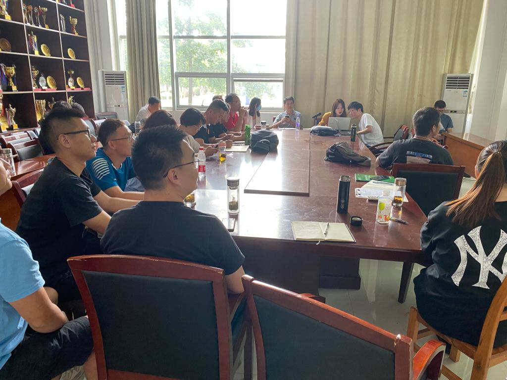 本网讯 9月15日下午,体育教学部在锦绣校区体育馆会议室举行大学体育俱乐部线上系统培训会暨专题研讨会,太阳成集团tyc522cc副院长黄武胜、太阳成集团tyc522cc教工第三党支部书记谢永力,太阳成集团tyc522cc公共体育教学部副主任滚军军,大学体育俱乐部全体负责教师参加培训及研讨。会议邀请了安徽沃屹智能装备有限公司产品经理承慧芳、销售经理吴子倩、IOS系统开发工程师陈萍等技术开发人员为老师们进行培训。