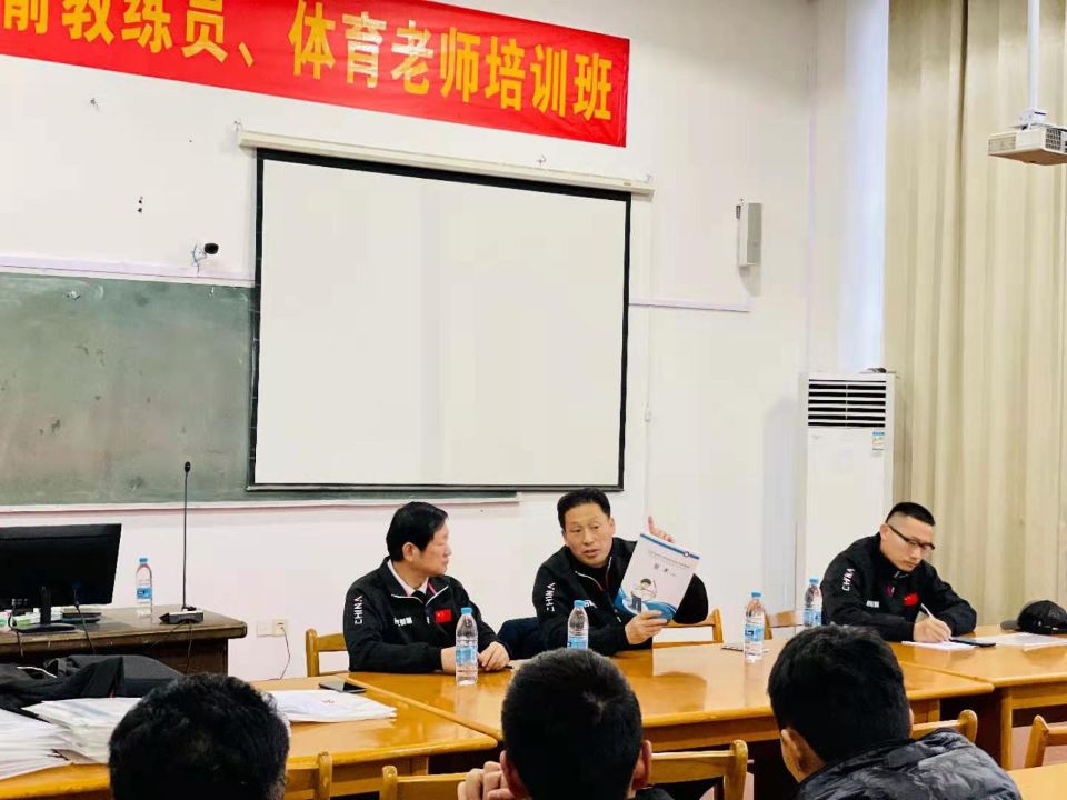 3月19日下午,在我院锦绣校区体育馆三楼研修室举行开班仪式。太阳成集团tyc522cc院长宋旭、合肥市射箭协会主席姚明、合肥市射箭运动协会总教练刘祥文,以及40余名中小学体育教师、俱乐部教练员参加开班仪式。
