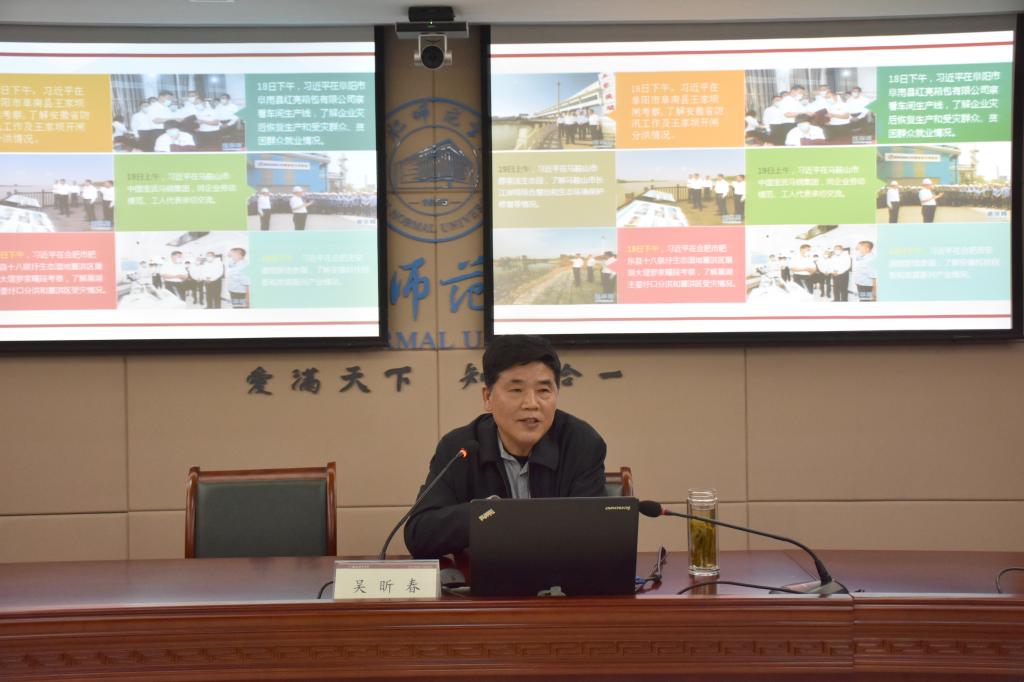 本网讯 为深入学习贯彻落实习近平总书记考察安徽重要讲话指示精神,10月28日下午,太阳成集团tyc522cc和马克思主义学院联合组织学习宣传贯彻习近平总书记考察安徽重要讲话指示精神宣讲会。太阳成集团tyc522cc、马克思主义学院教职工、机关一党委四支部全体党员参加宣讲会。邀请校党委副书记吴昕春主讲,马克思主义学院党总支书记吕田力主持宣讲会。