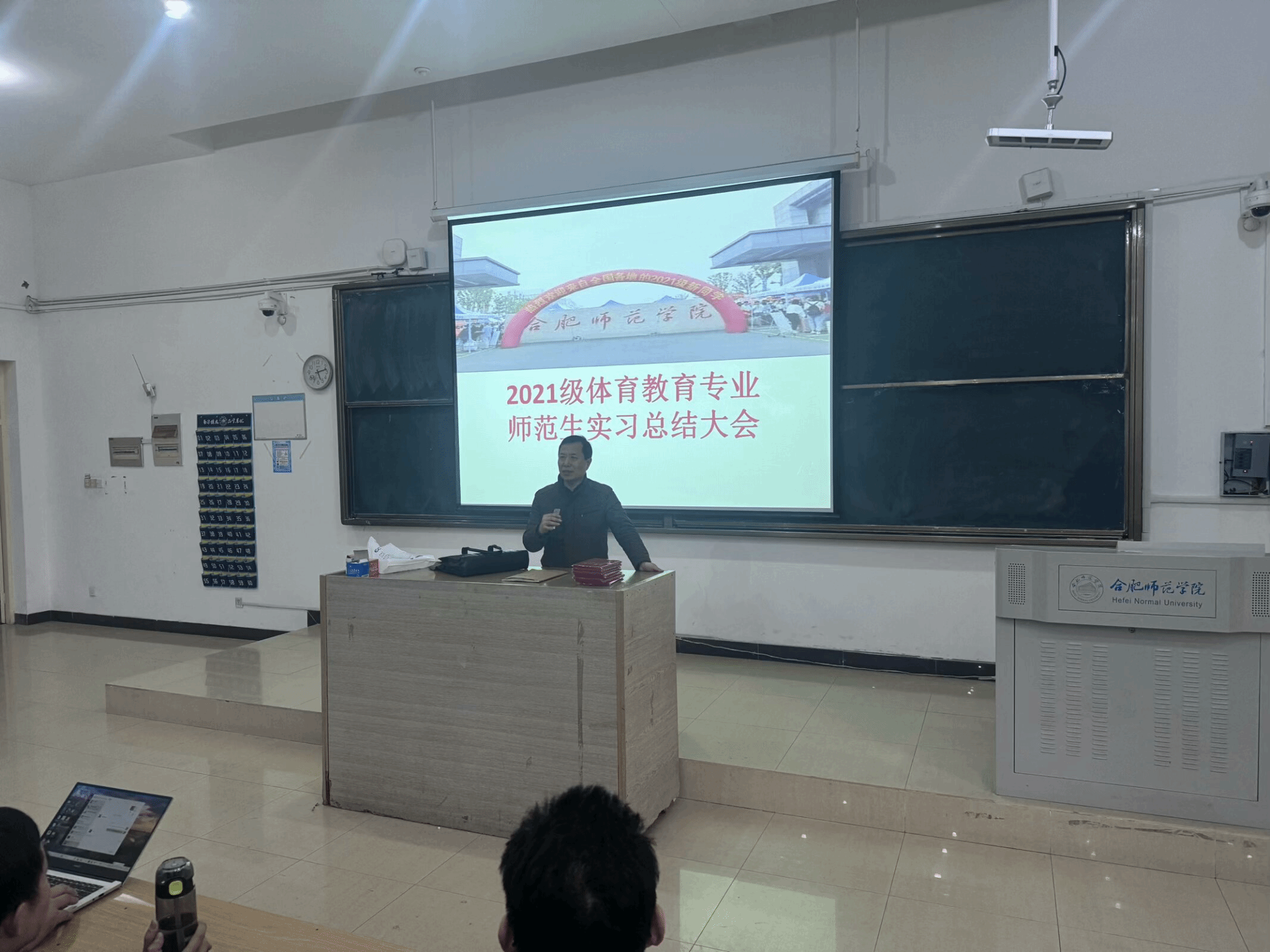 1月8日下午,太阳成集团tyc522cc2021级体育教育专业实习总结大会在博约楼108教室举行。太阳成集团tyc522cc党委副书记王飞,体育教育系主任曹垚、副主任张猛,辅导员陈山山、体育教育系部分教师以及2021级体育教育专业全体学生参加会议。会议由体育教育系副主任陆保云主持。