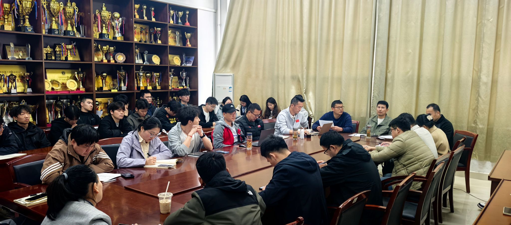 会议围绕校运动会筹备、竞赛规程、体测竞赛要求、开幕式组织等重点任务展开部署。各二级学院代表通过抽签确定运动会开幕式方阵出场顺序及看台区域划分,并现场领取报名说明材料。组委会同步建立专项工作联络群,确保信息畅通、协作高效。