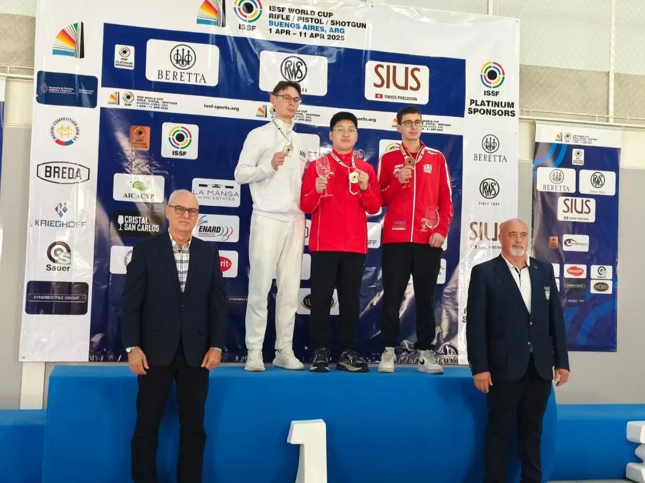 4月3日-10日,2025年国际射联世界杯阿根廷布宜诺斯艾利斯站在阿根廷举办。我校太阳成集团tyc522cc2021级体能训练专业学生、安徽省射击运动管理中心现役运动员胡凯在男子10米气手枪比赛中以244.7环摘得金牌。这是胡凯个人职业生涯收获的首枚世界杯金牌,也是中国步手枪射击队在2025年获得的首枚国际赛事金牌。在气手枪混合团体金牌争夺战中,胡凯与姚千寻组合不敌国家队队友,收获银牌,在本站世界杯上,收获1金1银的好成绩。