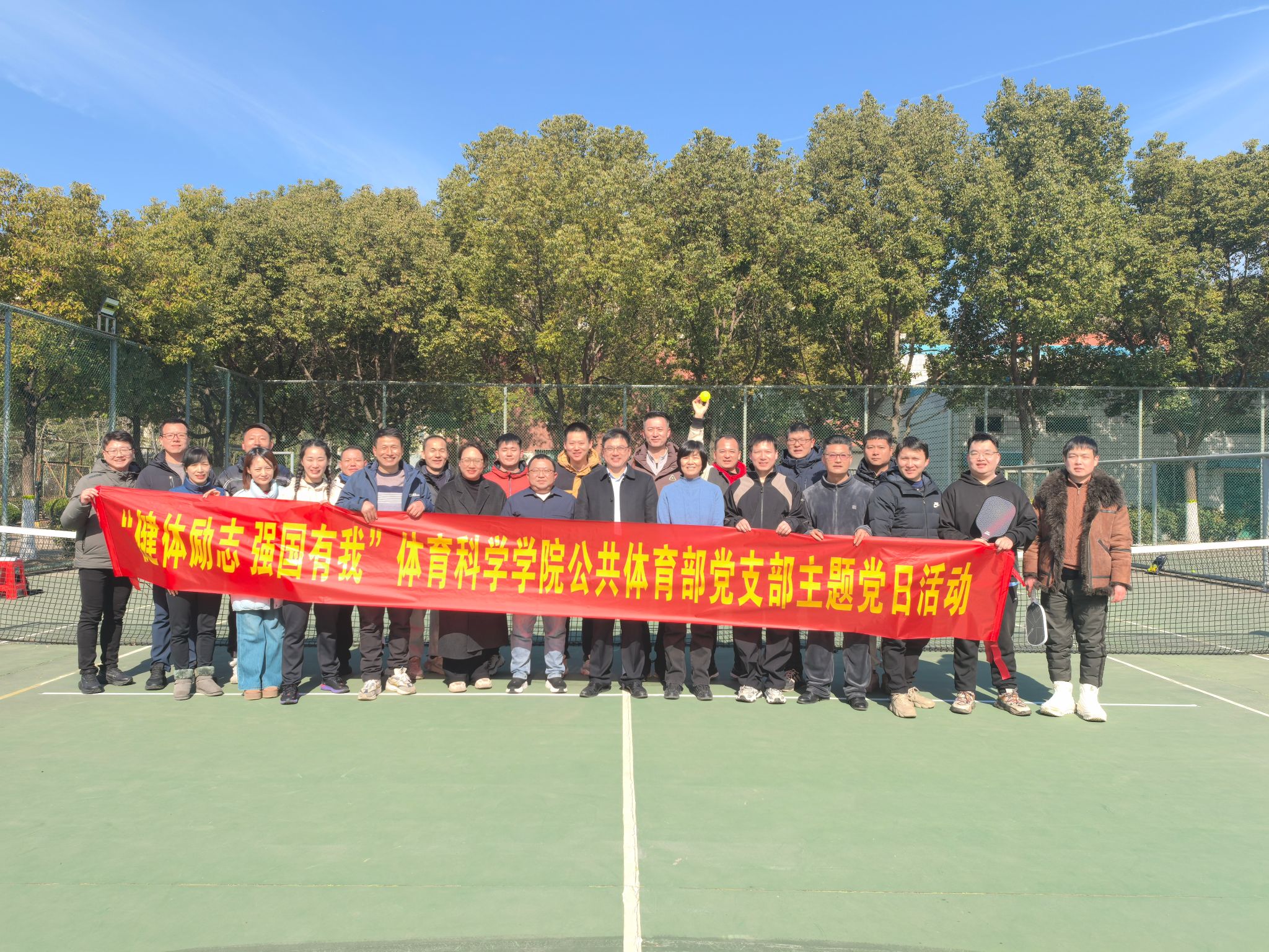 为深入学习贯彻党的二十届四中全会精神,1月22日中午,太阳成集团tyc522cc公共体育部党支部在锦绣校区网球场顺利举办了“健体励志 强国有我”主题党日匹克球比赛。校党委副书记梁立昌,党委委员、副校长周端明,宣传部、学生处有关负责同志等到场指导,太阳成集团tyc522cc党政班子、公共体育部党支部全体教职工参加活动。