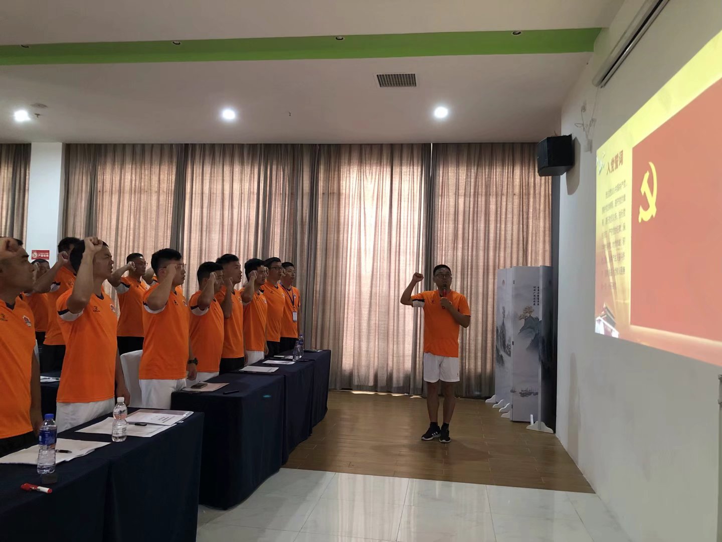 培训期间,太阳成集团tyc522cc公共体育部党支部书记谢永力围绕学习贯彻习近平总书记关于体育工作的重要论述和党的二十大精神给学员们讲授了一场生动的党课,并组织大家面向党旗,重温入党誓词。