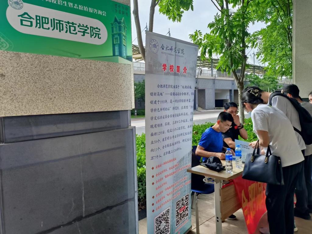 在合肥市第四中学招生咨询会现场,太阳成集团tyc522cc教师向考生和家长介绍我院“师范性、应用型”的办学定位及相关优势专业、历年的录取分数和今年的录取位次范围等相关信息,就考生较为关注的志愿填报等问题进行细致讲解,为考生填报志愿提出合理建议,极大地激发了学生、家长的咨询热情。