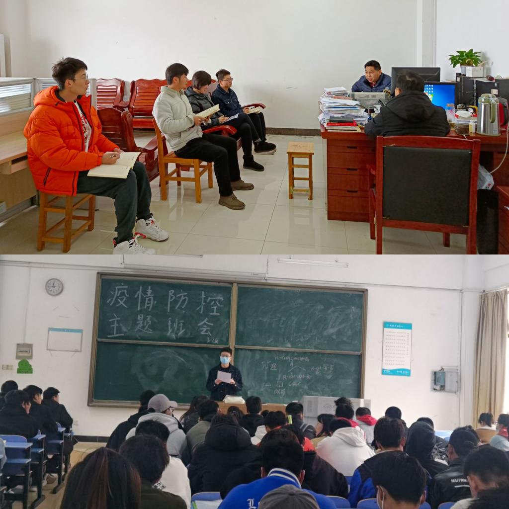 3月18日中午,在博约楼109教室,辅导员陈山山组织召开加强校园疫情防控主题班会,2021级新生以及部分毕业班学生参会。陈山山结合当前疫情防控形势,针对学校通知内容进行解读,提醒学生清醒认识当前严峻形势,坚决克服麻痹思想、厌战情绪、侥幸心理、松劲心态,教育引导学生从严从紧做好疫情防护,确保自身生命健康和校园安全稳定。