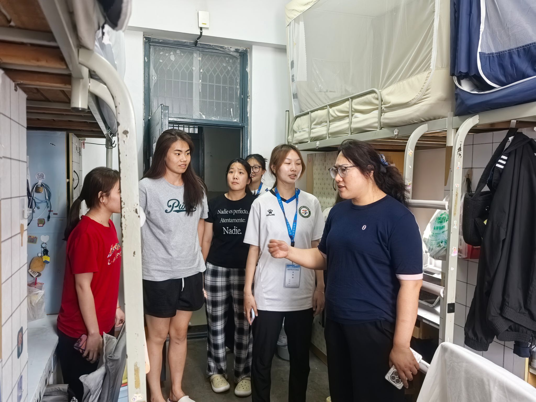 走访过程中,学院党委副书记马飞艳与辅导员们逐间走访,重点排查宿舍用电规范、消防设施完好性及疏散通道畅通情况,对插线板使用、大功率电器存放等关键环节进行了细致检查。同时,也对宿舍卫生状况、物品规整、公共区域维护等文明素养方面进行了综合评估。针对检查中发现的个别宿舍存在的安全隐患和卫生死角,现场提出明确整改意见,要求相关宿舍立即行动,杜绝麻痹思想,学院后续也将组织“回头看”确保整改到位。