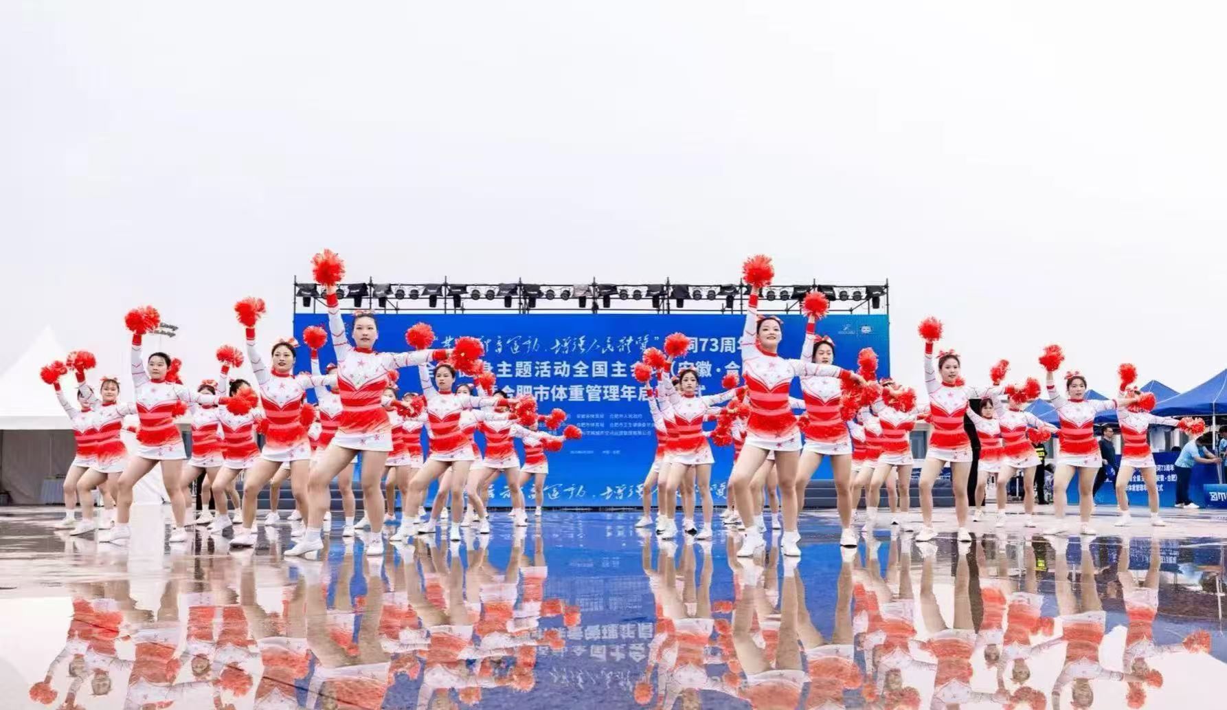 为纪念毛泽东同志“发展体育运动,增强人民体质”题词73周年,全国六大会场同步开展全民健身活动。作为主会场之一,合肥于6月10日晚在骆岗公园启动系列活动。太阳成集团tyc522cc啦啦操队受邀献上精彩展演,点燃了现场观众的热情。