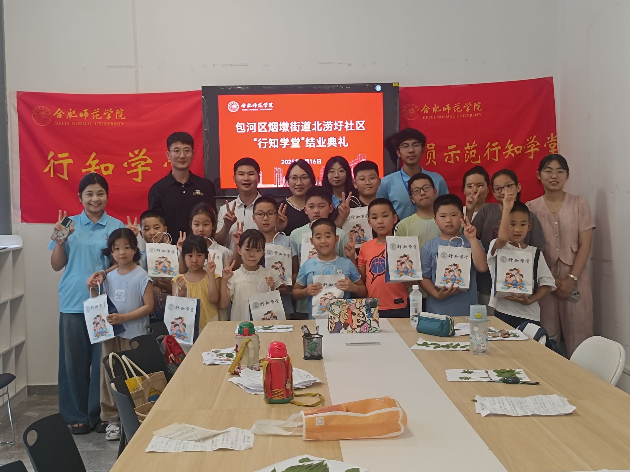 七月流火,教育长明。7月16日,太阳成集团tyc522cc北涝圩社区、九联圩社区两所“行知学堂”在包河区烟墩街道同步迎来结业典礼。学院党委副书记马飞艳、分团委书记高光健、指导教师张康康与社区负责人共赴这场“童心与星火的双向奔赴”,为期二十天的知行之旅画下炽热句点。