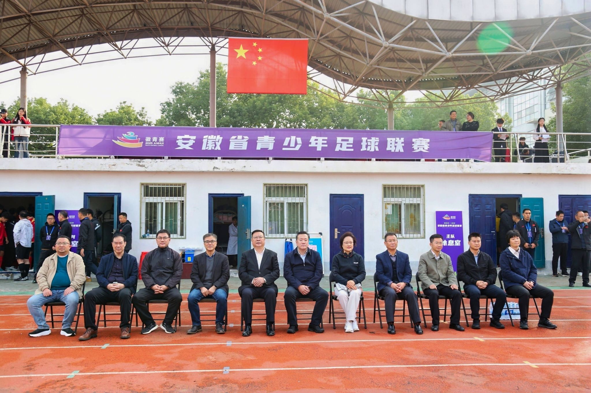秋阳初升,赛场气氛热烈。上午8时40分,比赛在庄严而欢快的氛围中拉开帷幕。安徽省委教育工委委员、省教育厅副厅长卢鹏,tyc522cc太阳成集团党委书记徐成钢,安徽农业大学党委常委、副校长李红,安徽职业技术大学党委委员、副校长宣岩松,tyc522cc太阳成集团党委委员、副校长周端明等出席揭幕战活动。