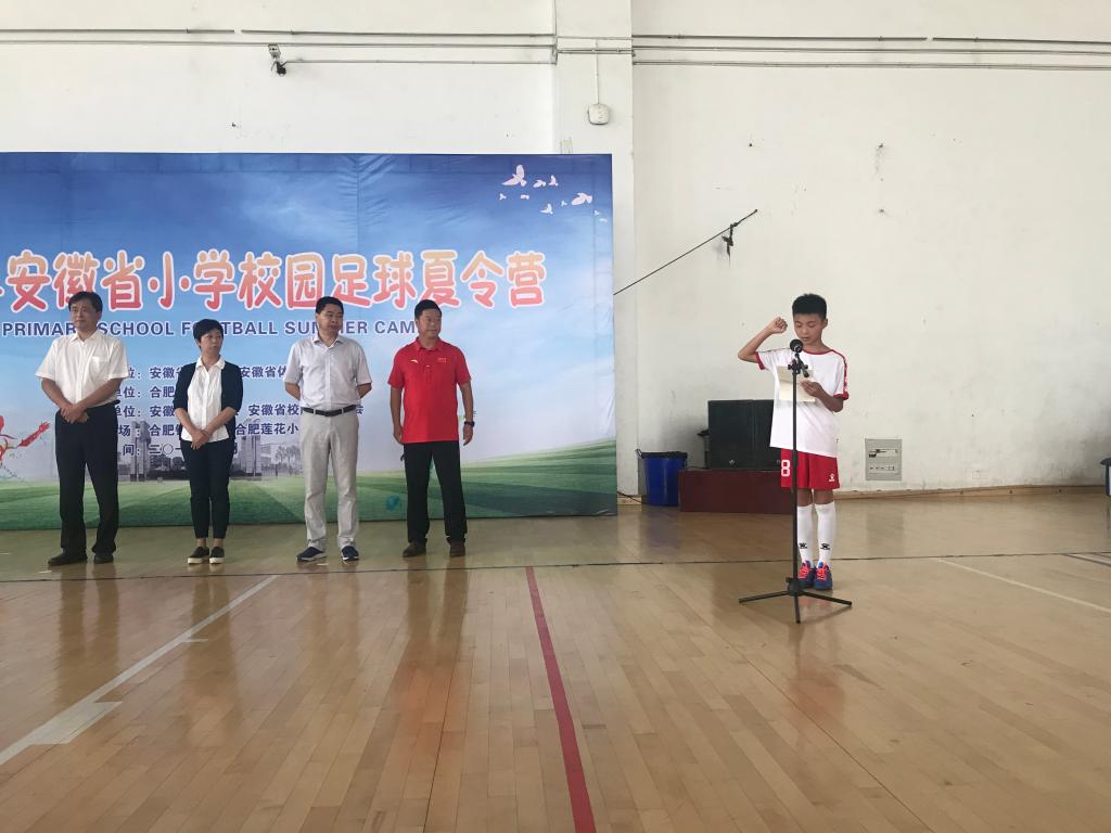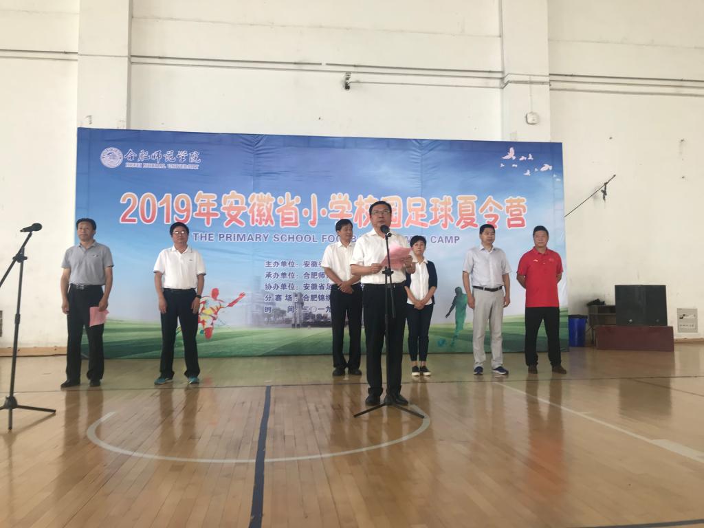 省教育厅原副巡视员、省校园足球协会主席周元宣布2019年安徽省小学校园足球夏令营开幕。
